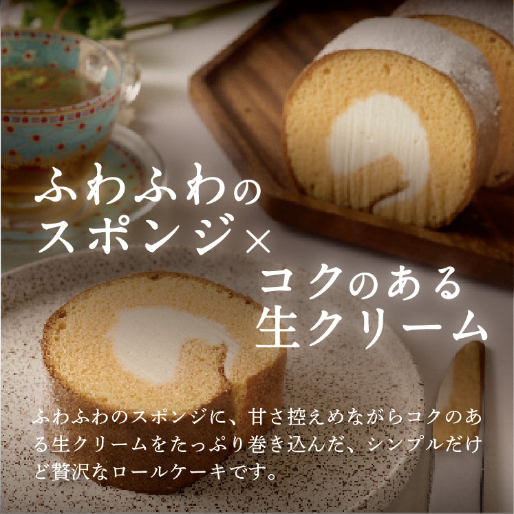 船橋押木養鶏場の新鮮赤玉卵と北海道根室の牧草で育った牛の高脂肪クリームの、シンプルだけどこだわりのあるロールケーキです。