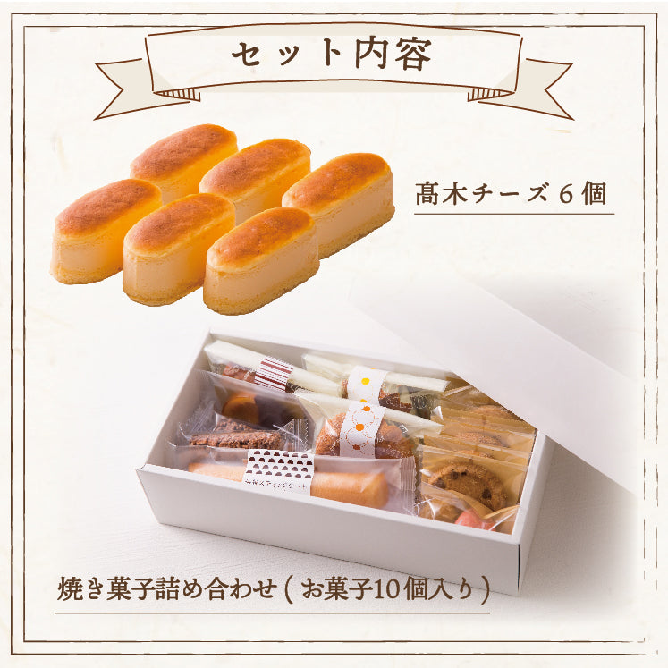 高木チーズ6個、焼き菓子詰め合わせ(お菓子10個入り) |